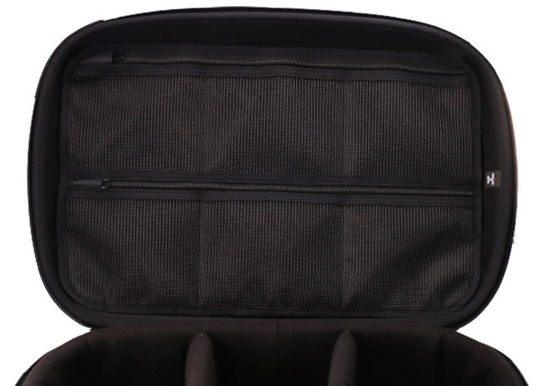 The main body is made of EVA foam to absorb external impacts. The interior is lined with thick cushioning to prevent scratches on reels. Adjustable partitions allow for easy storage. Six pockets are included for storing reel handles and small items.