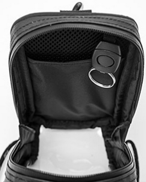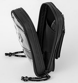 Designed to attach to game vests, bags, etc. Versatile single-layer construction. Clear front for easy viewing of contents. Rain- and splash-resistant PVC tarpaulin material with a waterproof zipper (not completely waterproof). Attaches to vertical belts on game vests, etc. Comes with a carabiner (with DAIWA logo) for versatile attachment. Features a detachable key hook and slit pocket on the inside. Compatible with the separately sold WP Mobile Pouch (B).