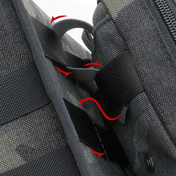 The tape loop can be used to attach a carabiner (sold separately) to a D-ring or other item.