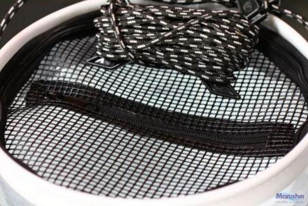 Made with clear sleek sleek fabric. It features a rubber mesh lid with a zipper for easy access. An 8m rope with a handle is included as standard.