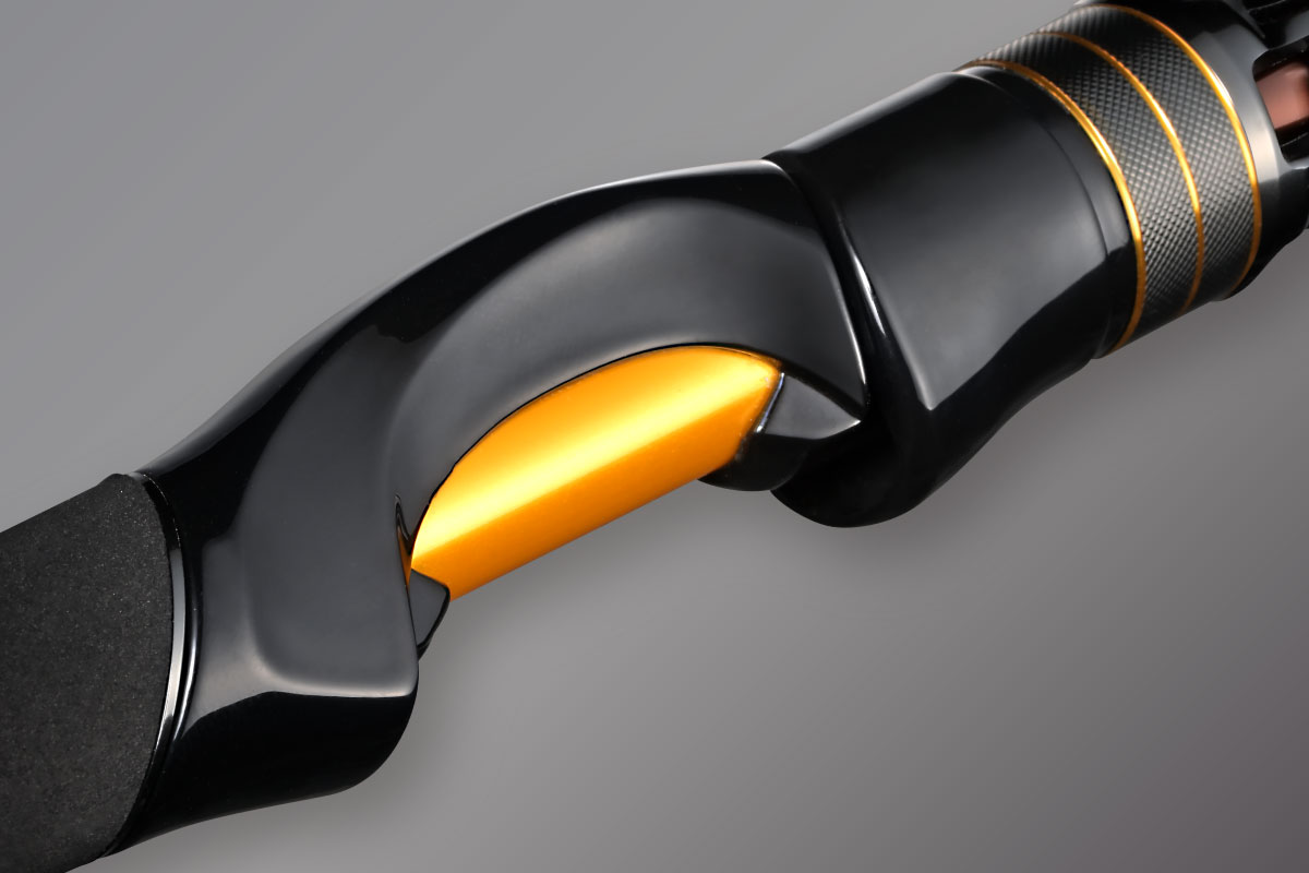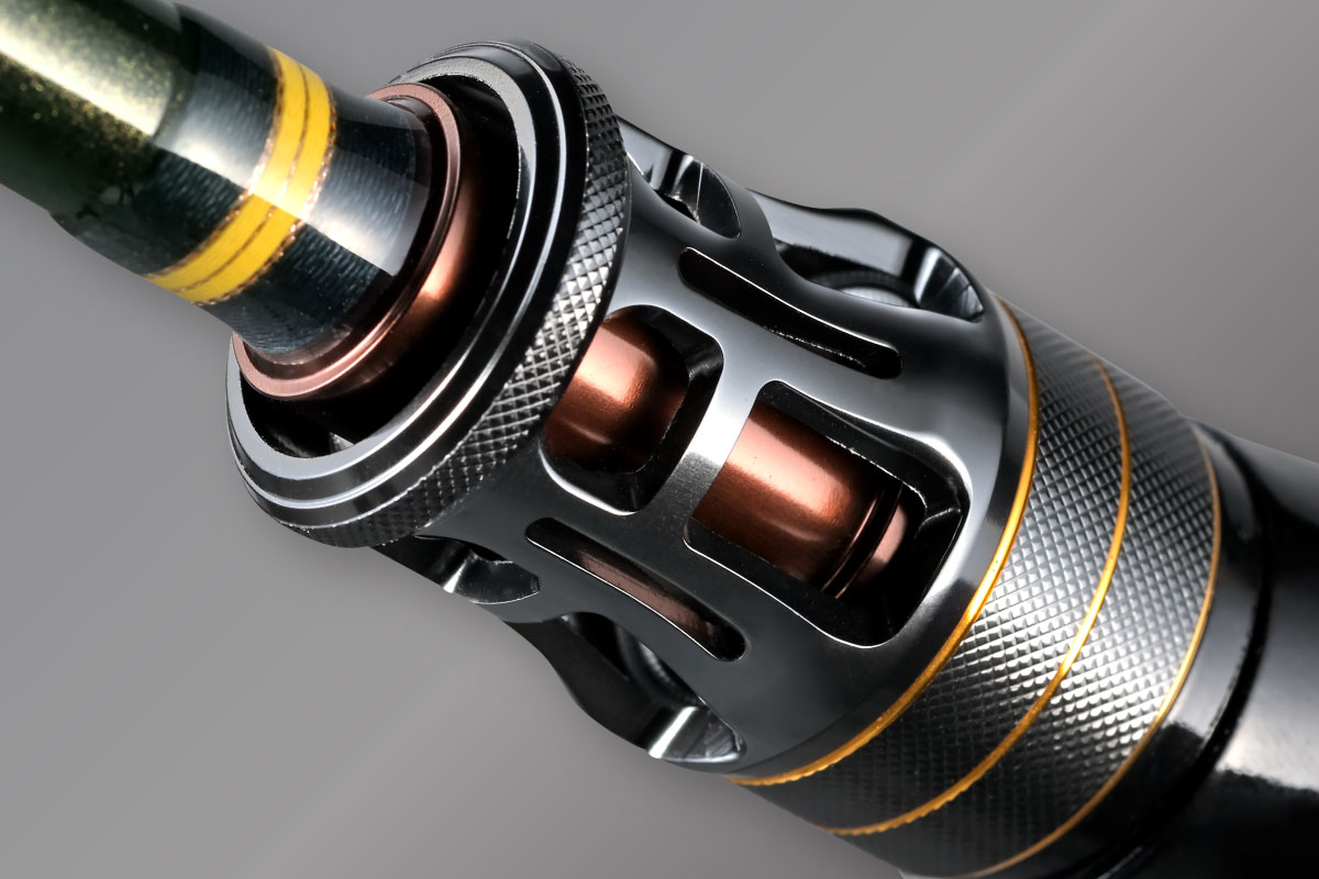 This patented head locking system from ITO Engineering, proven in the Destroyer series, delivers stability, vibration transmission, and machined appeal. The CAIYEN VSM is designed with a focus on squid metal-specific ergonomics and performance. The head locking hood, carved from a solid block of aluminum, contacts the outside of the blank's metal-sheathed connector under load. This enhances the rod shaft's axial rigidity and acts as a metal bridge that amplifies various vibrations from the depths - like delicate nibbles on the lure or the current's effect - and transmits them to the angler's hands. With use, it facilitates an intuitive connection between the angler's senses and equipment, making the rod shaft feel like an extension of self.