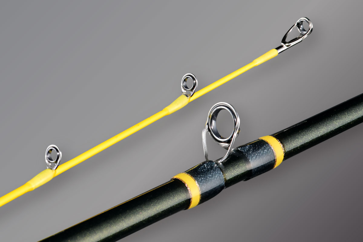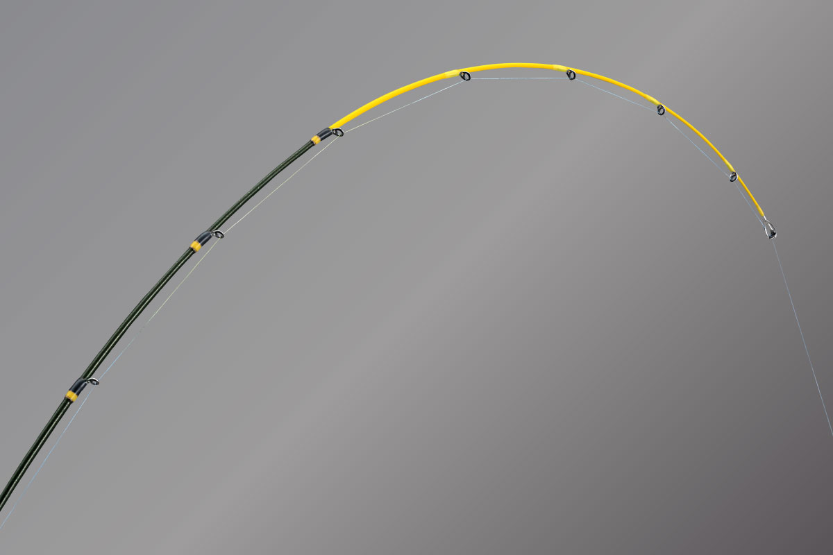 Each model features a supple glass solid-tip that ensures reliable hooking of subtle squid bites. The tip's uncanny sensitivity responds instantly to the slightest load without giving the squid any sense of unnatural resistance, achieving an otherworldly balance between precise angler control, and forgiving sensitivity. This dynamic solid-tip design also acts as a visual bite detector, responding gracefully to the most subtle advances of squid. The artisanal tip is finished in "SPEED YELLOW" for enhanced visibility at sea, pursuing both tactile and visual sensitivity to elevate your fishing experience.