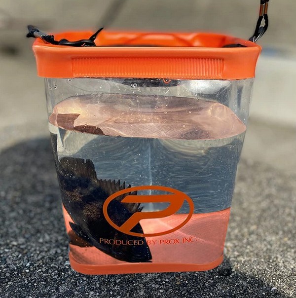 - A transparent square fish-keeping bucket that lets you see the contents inside.