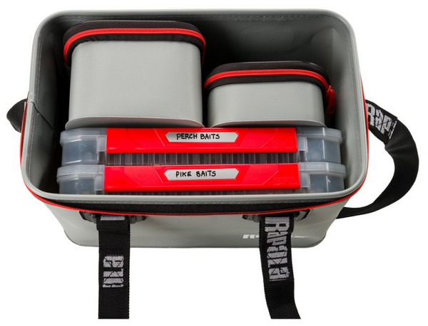 Hydro Tackle Bag is equipped with a stainless steel zipper adapted for use in both fresh and salt water. When the bag is not in use, it can be easily folded, making it easy to store in a boat, car or storage room. The capacity is designed to accommodate up to five 3700-size bait boxes, equivalent to Rapala 356 boxes, which provides a clear and efficient organization of your bait assortment.