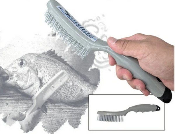 Removing scales from fish is essential to making it easier to cook and improving its texture. This "Funado's Scale Remover" is a handy tool for such occasions. It is much easier and quicker to remove scales than using the back of a knife, and it doesn't damage the fish. It can be used on a variety of fish, large or small, including bluefish, red sea bream, flounder, and grouper. The brush-shaped design keeps the stainless steel and wire used to remove the scales at a distance from the handle, eliminating the risk of injury from the fish's fins.