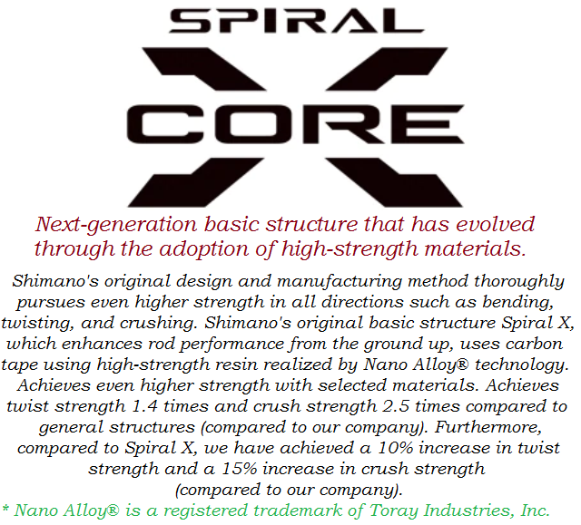 In order to achieve significant weight reduction, we have newly adopted [Spiral X Core] that realizes light and strong blanks and [Carbon Monocoque Grip] that brings further weight reduction and high sensitivity. Thanks to the weight reduction, the sharpness and response during operation have been greatly improved, and it has evolved as a rod that allows you to enjoy more accurate games.