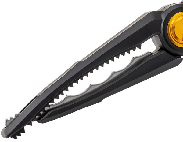 Featuring two types of blades that securely hold large horse mackerel and hairtail. The wide opening attracts fish, and the tip-cross structure allows you to grip both large and small fish. A portable holster is included.