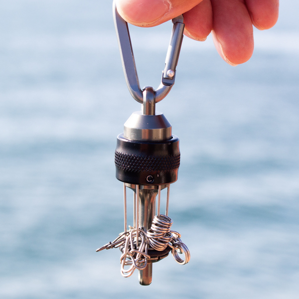 Six holders allow you to organize and securely hold snap rings. A sliding lock ring prevents snaps from falling off. Durable aluminum machined body.