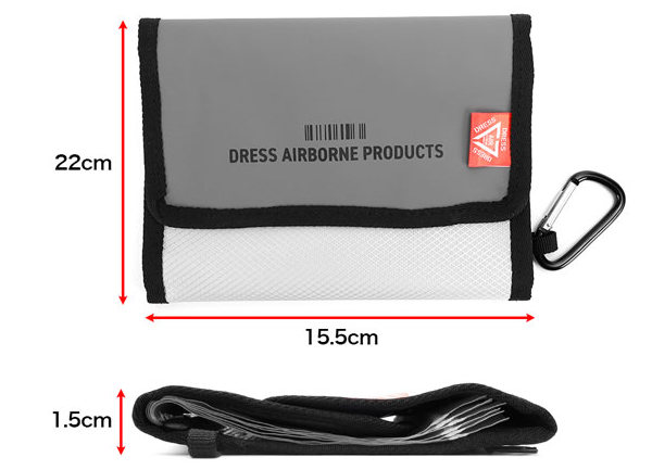Zipper bag: 8.5cm x 18cm / Inner pocket: 10cm x 19.5cm / Outer pocket: 10cm x 38cm Materials: Main body: Polyester, Tarpaulin / Zipper bag: Polyethylene.