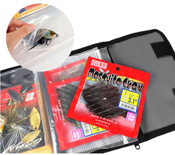 You can store lures and other items as they are. The crimped zipper bag allows you to sort them by type.