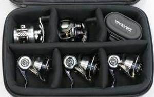 The interior is made of cushioned material to prevent reels from hitting each other and absorb shocks.