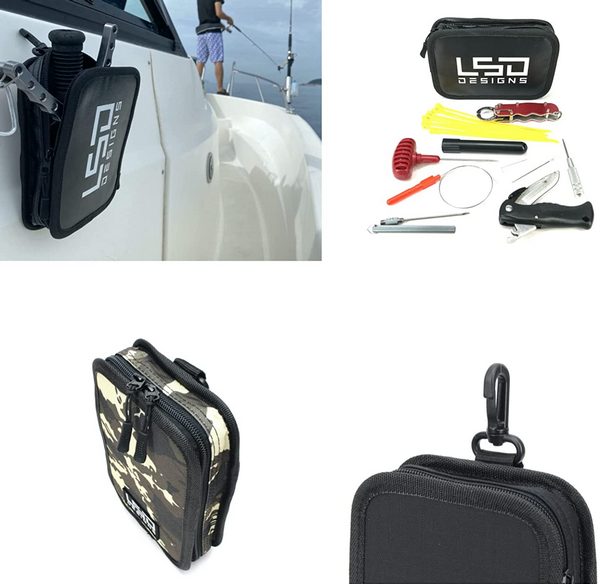 This tackle pouch can be attached to an LSD bag custom base or a fishing game vest. It's perfect for storing fishing gear, including leaders, fishing accessories, smartphones, and keys! It's perfect for storing small shock leaders, fishing accessories, smartphones, keys, and more. It's large enough to fit a smartphone and spare battery, even while charging wirelessly. (Depending on the size of the smartphone or spare battery, it may not fit.) The interior features three tight-open pockets (inside the front) and a zippered mesh pocket (inside the back), convenient for storing fishing gear in its original packaging. A stopper mechanism prevents contents from falling out when opened, stopping the front at an approximately 45° angle. It can also be used with the pouch open. The D-ring on the snap hook and an internal snap hook prevent keys and other items from falling out. The double-slider zipper allows for quick opening and closing. The attachment on the back allows for attachment to various locations, including the LSD bag custom base, belt, boat railings, and belts.