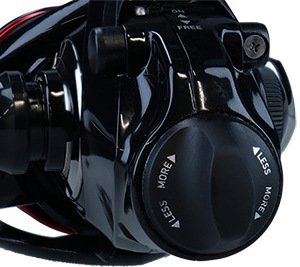 The dial adjusts the line pull-out tension when the spool is free, and can be fine-tuned with fine click settings.