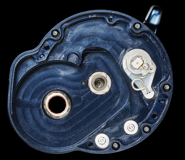A housing system that firmly supports the internal structure with high rigidity and precision, resulting in precise reeling feel and power. Using metal for the essential frame is a prerequisite, and by combining it with the side plate and set plate, it enables basic performance to be maintained for even longer. This series uses aluminum alloy for the gear-side side plate, one-piece frame, and set plate. The full-aluminum housing is fully machined using the unique round design, achieving unparalleled strength.