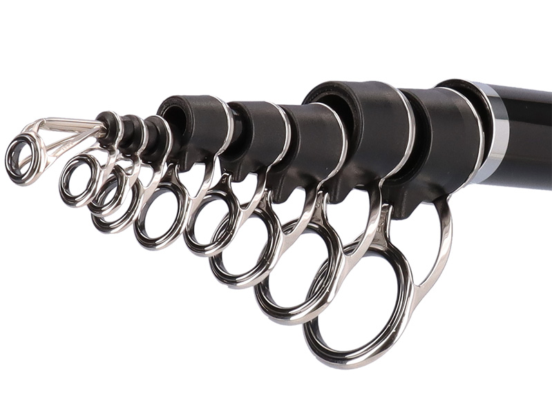 Equipped with highly durable floating K-guides. This large-diameter guide setting prevents hang-ups from float stoppers and knots, while ensuring smooth line release during casting and free line feeding.