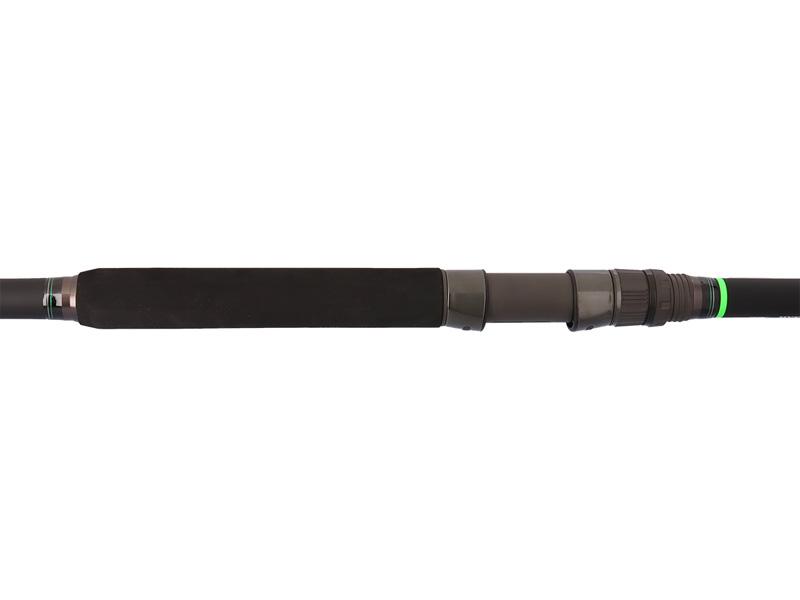 The front grip features flattened sides and an oval-like profile for a secure, comfortable hold. It provides excellent stability during fights with large fish.