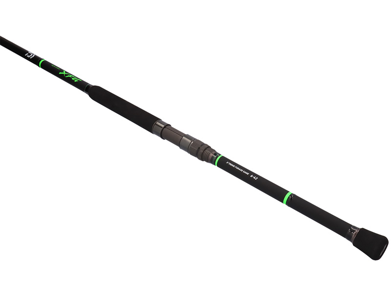 Key features include an optimally positioned reel seat for smooth transition into waist-supported fights, an oval-shaped foregrip that provides excellent stability when battling powerful fish, and large-diameter guides that handle thick lines with ease.