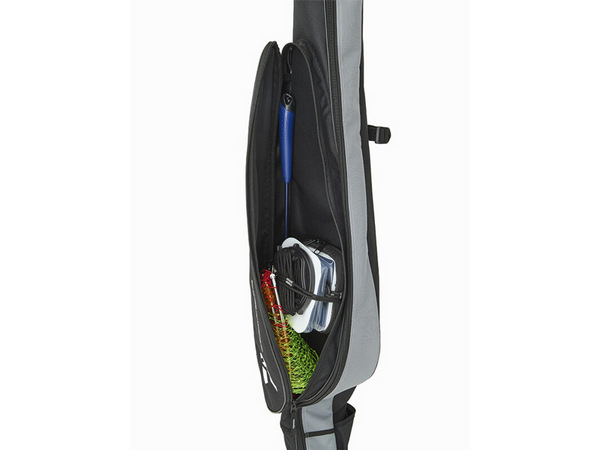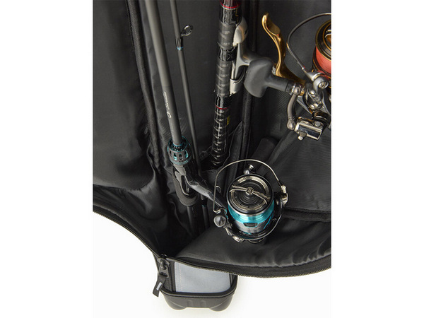 Equipped with a stepped storage pocket. Allows carrying two sets of reel-equipped float fishing rods.