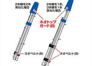 Precious rod tip・Prevent damage to the guide and ball opening! Can store about 2 to 3 parallel rods (4 to 5 wide size rods). Made of 5mm thick chloroprene and placed over the top of bundled rods to prevent damage to the rod tip, guide, and ball mouth. With Velcro for holding to reduce slack in the main body. Eliminates the looseness of the top and allows for a firm hold. "Split Velcro" that wraps tightly around the rod. The Velcro on the back is divided into two parts so that it can be firmly fixed.