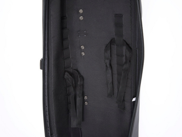 The shoulder strap's attachment position is adjustable in two stages. Adjusting it to match the length from your shoulder to your feet prevents it from touching the ground during transport.