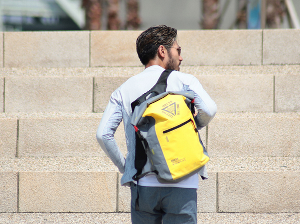 The waterproof roll-top closure adjusts to various cargo sizes.