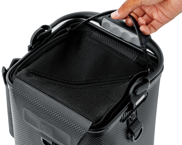 - Mesh lid with a double zipper that can be opened and closed with one hand.