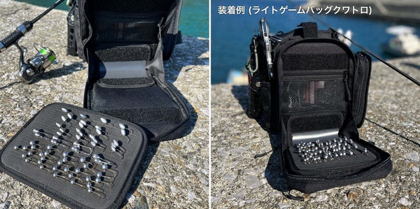 A sponge type with slits that allows you to store jig heads directly. A custom seat exclusively for Pro Gear bags, supervised by professional angler Takemoto. <Pro Gear Bag Series> A high-spec series packed with features, created in collaboration with renowned professionals and fishing experts from around the region. A detachable seat that can be attached to the Light Game Quattro or Foot Egging 3G. (Compatible bags will be released sequentially.) With 21 5mm wide slits, you can insert jig heads alone or jig heads with worms attached, allowing for speedy lure changes. Not only for light saltwater fishing such as horse mackerel and rockfish, but also for managed fishing areas where small spoons are used. Equipped with two Velcro straps on the back for a firm hold.