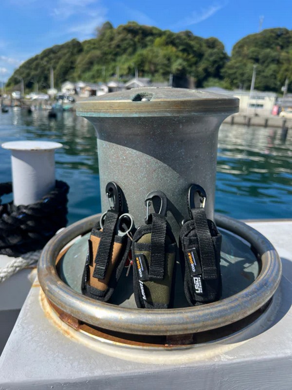 Made of Cordura material for increased durability, it can be attached to the side of a bag or the belt of a life jacket.