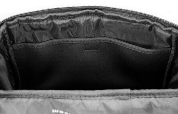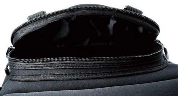 This shoulder bag is crafted from neoprene, a material considered difficult to craft, to protect the bag from splashes and other elements.