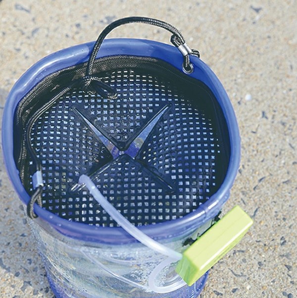 - The opening is large enough to fit a goldfish net, making it easy to add and remove live bait such as horse mackerel, sardines, and shrimp. Since you don't have to open the lid all the way, fish won't jump out.