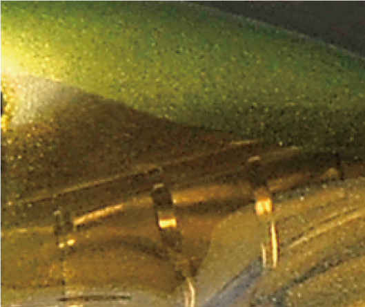 특수 페인트를 사용하여 보는 각도에 따라 색상이 신비롭게 변하는 마지오라 마감의 뒷면입니다. 색상 변화에는 보라색에서 파란색, 주황색에서 녹색으로 변하는 패턴이 있으며, GG 및 GP와 단독으로 또는 함께 자주 사용되는 색상입니다.