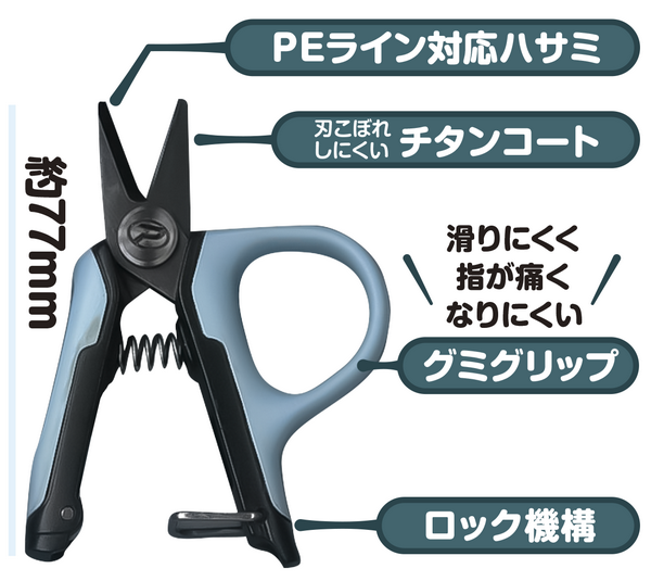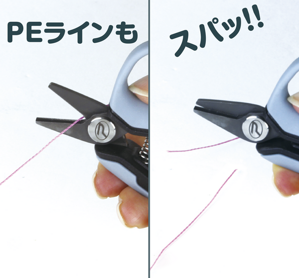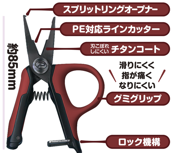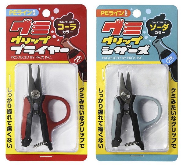 These mini pliers and scissors feature a gummy-like grip. Compact and highly portable, they're easy to grip and offer exceptional maneuverability. The ring grip has a gummy-like elasticity, providing a firm grip and less finger pain. The Gummy Grip Pliers feature a cola-colored grip. Approximately 85mm in length. They feature a split ring opener compatible with #00-#1 line and a PE line cutter. The Gummy Grip Scissors feature a soda-colored grip. Approximately 77mm in length. Compatible with PE line. Both models feature titanium-coated stainless steel SUS420 blades and a secure locking mechanism. These compact yet highly practical fishing tools.