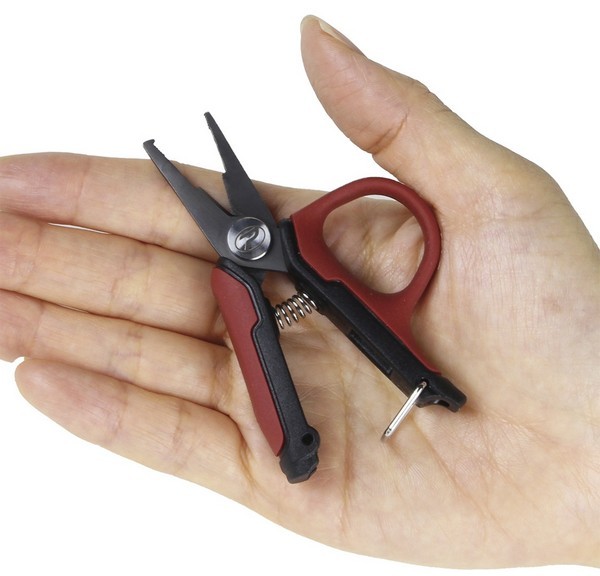 Multi-functional pliers with a split ring opener and PE line cutter.