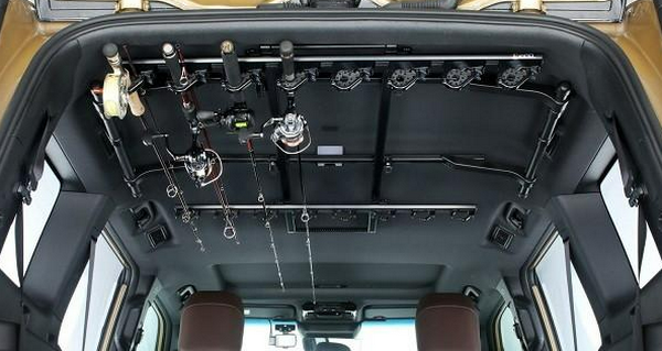 This black, dual-hold rod can hold up to 8 rods, including bass, sea bass, offshore, and fly rods.