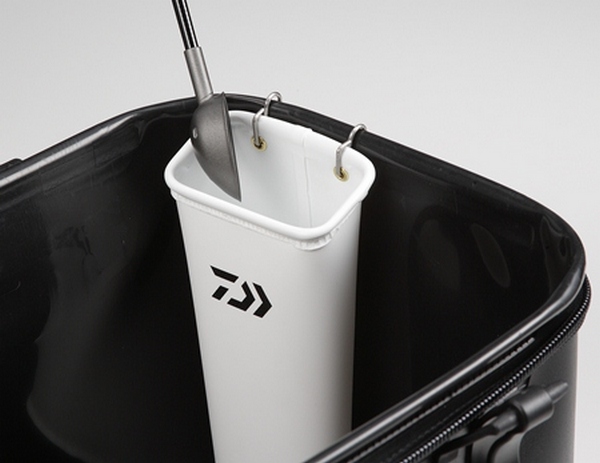 This stainless steel short hook can be attached with one touch. It can be attached either inside or outside the bucket. The bucket lid can be opened and closed when attached inside, making it highly portable. The opening is slanted, making it easy to put in a ladle. The mirror-finished interior and washable EVA material make it easy to clean. The trapezoid shape with a tapered bottom prevents it from tipping over even when a long ladle is placed inside.