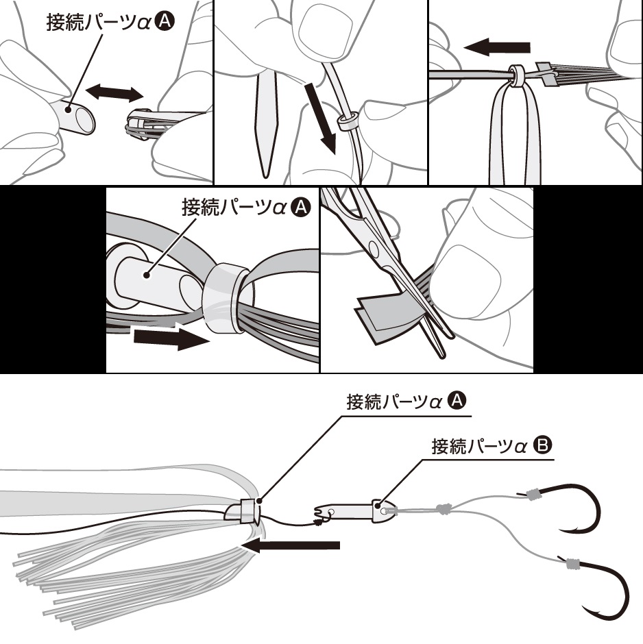 Трубка для крепления юбок и галстуков к отдельно продающейся соединительной части "RA". Поскольку она толще предыдущей модели, ее растягивающая сила увеличилась, что делает ее не только трудной для разрезания, но и предотвращает соскальзывание юбки галстука. Вы не только можете заранее настроить и подготовить их, но и легко изменить только галстук или юбку на месте, перемещая трубку к леске.