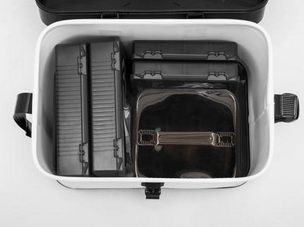 - The hard lid is resistant to rain and spray, preventing small items from falling off.