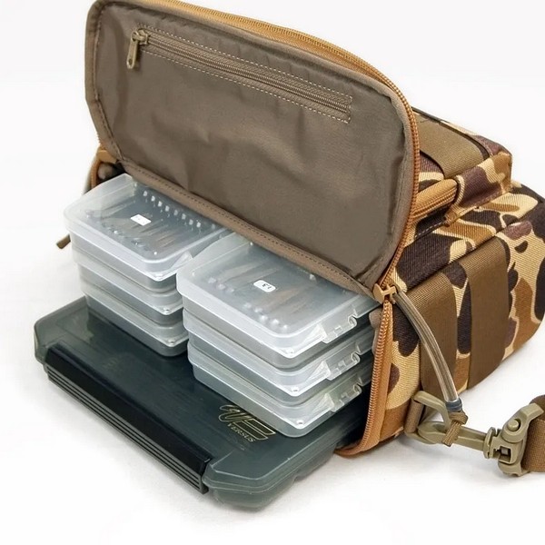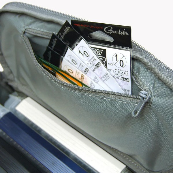 The inside of the flap features a zippered pocket for small items. Hooks, sinkers, and other items can be stored in their original packaging.