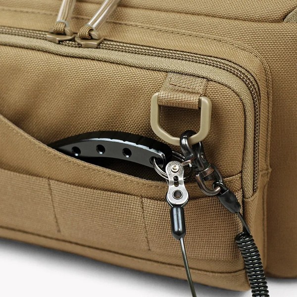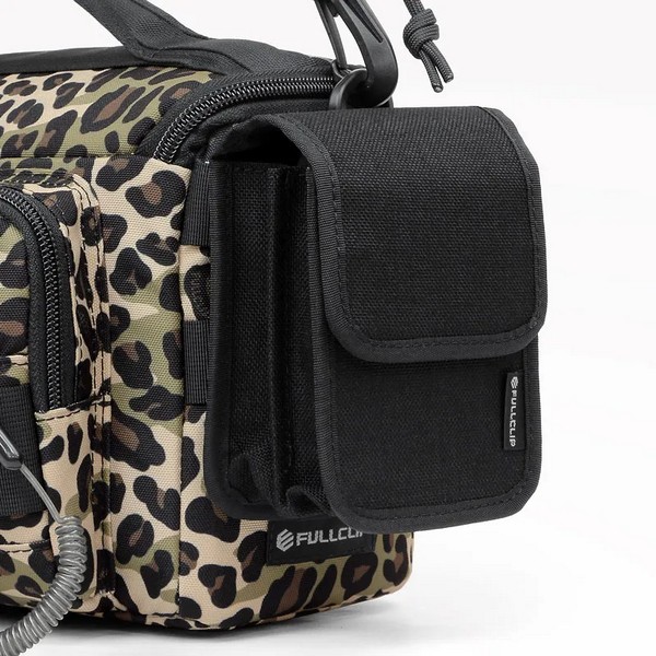 The front pocket has a curved opening for smooth access. It features a D-ring for attaching anti-drop cords (sold separately).