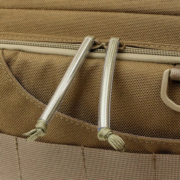 The outer material is made of durable Cordura nylon and 600 denier polyester, creating a lightweight, yet sturdy body. The entire body is padded with cushioning material to absorb shock and reduce noise generated by the contents. This core also acts as buoyancy, preventing the bag from sinking even if accidentally dropped into water.