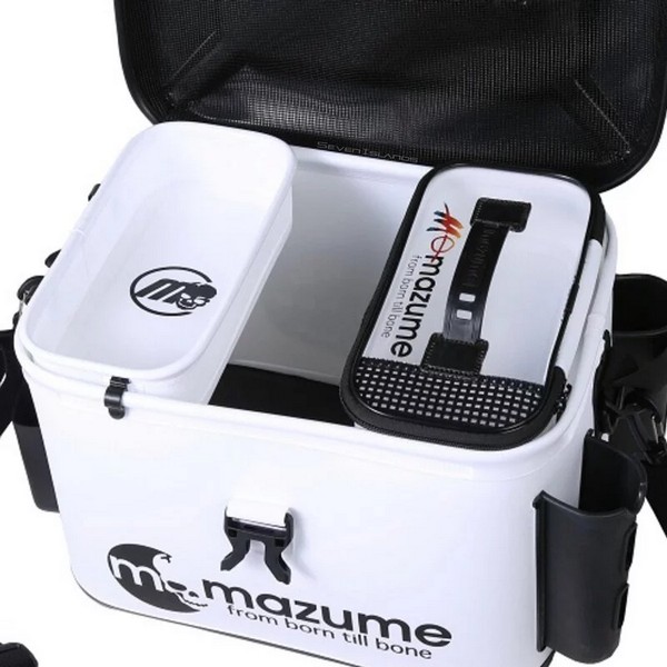 The Bacchan comes with an EVA case with a tray and mesh section (sized so that the contents can be easily accessed even with the case attached). The tray holds frequently used scissors, leaders, jig heads, etc. You can throw used lures into the EVA case and then rinse them immediately with fresh water when you get home, then drain the rinse water.