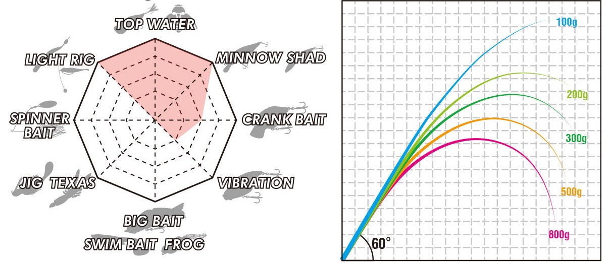 Обладает высокой универсальностью между быстрым и регулярным. Обладает как резкостью, так и гибкостью, и может использоваться как для рыбалки на перемотку, так и для стрельбы.