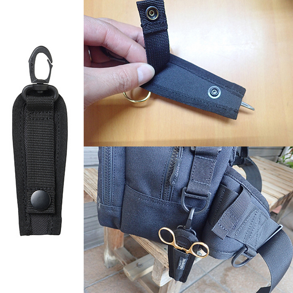 A forceps holder that can be attached to D-rings or belts!! This is a holder for storing forcesps used in light games such as fly fishing and horse mackerel fishing. The main body is designed to hold the forcesps with a wide rubber band, and the tip of the rubber band is missing, so it can accommodate forcesps of various lengths.