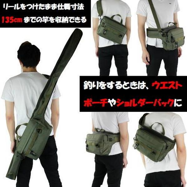 When fishing, the part where the rod was stored becomes a belt, and it can be used as a waist pouch or his shoulder bag.
