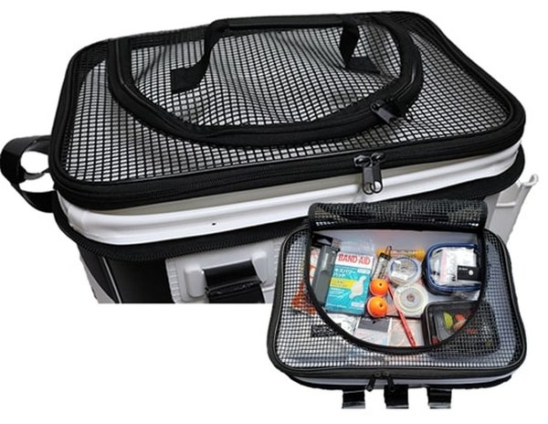 This is an evolution of the slightly taller 40-size tackle bag. At 31cm tall, it's a little taller than the standard 40-size tackle bag, offering a large capacity. It's an evolution of the slightly larger bag, able to securely store lunch boxes and other unexpected items. It's been upgraded with rod holders, an inner case, a fist holder, and a mesh mechanism.