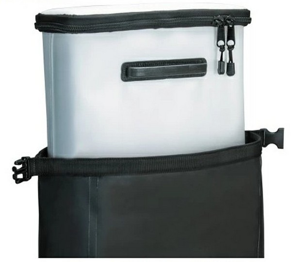 This model features a simple front pocket. The Fish Carry Bag DX, which allows you to carefully transport your catch, has been improved. It now features a simple front pocket. The main body is double waterproof, with a backpack-style outer layer made of highly waterproof PVC tarpaulin and an insulated waterproof EVA inner layer. The outer layer is equipped with a waist belt and padding to reduce the burden when carrying the bag. By removing the inner layer, it can be used as a regular waterproof backpack. Depending on the size of the fish, it can hold up to three 5kg-class bluefish.