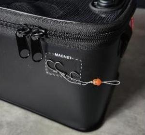 - Equipped with a magnet on the side of the main body for temporary hook storage, and a convenient mesh pocket on the back of the top lid, this multi-functional bag features a magnet for storing hooks temporarily, and a convenient mesh pocket on the back of the top lid.
