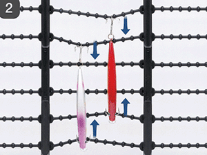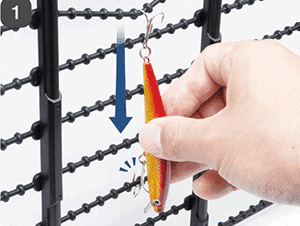 - The lure is hung on an elastic silicone hanger, preventing problems such as lures moving around and getting tangled.
