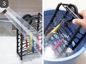 - You can wash the lures with a shower or soak them in water to remove salt while they're still hanging.