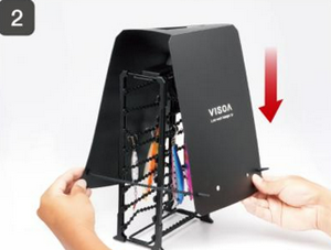 - Simply place it over the Lure Wash Hanger and fasten the band.